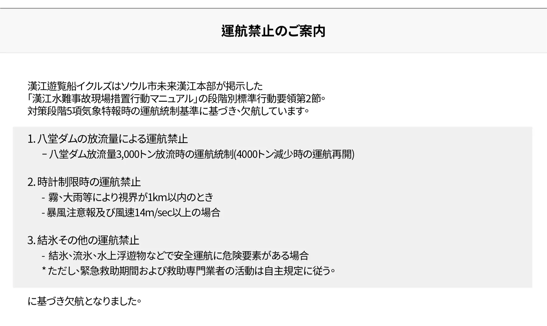 当日の気象状況により、運航の可否がリアルタイムで変更される場合があります。