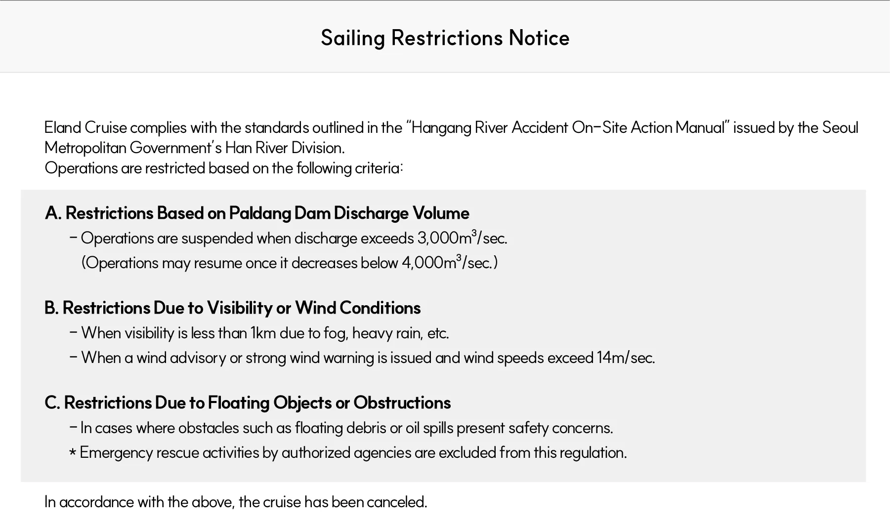 Please note that the cruise schedule is subject to real-time changes depending on the weather conditions of the day.