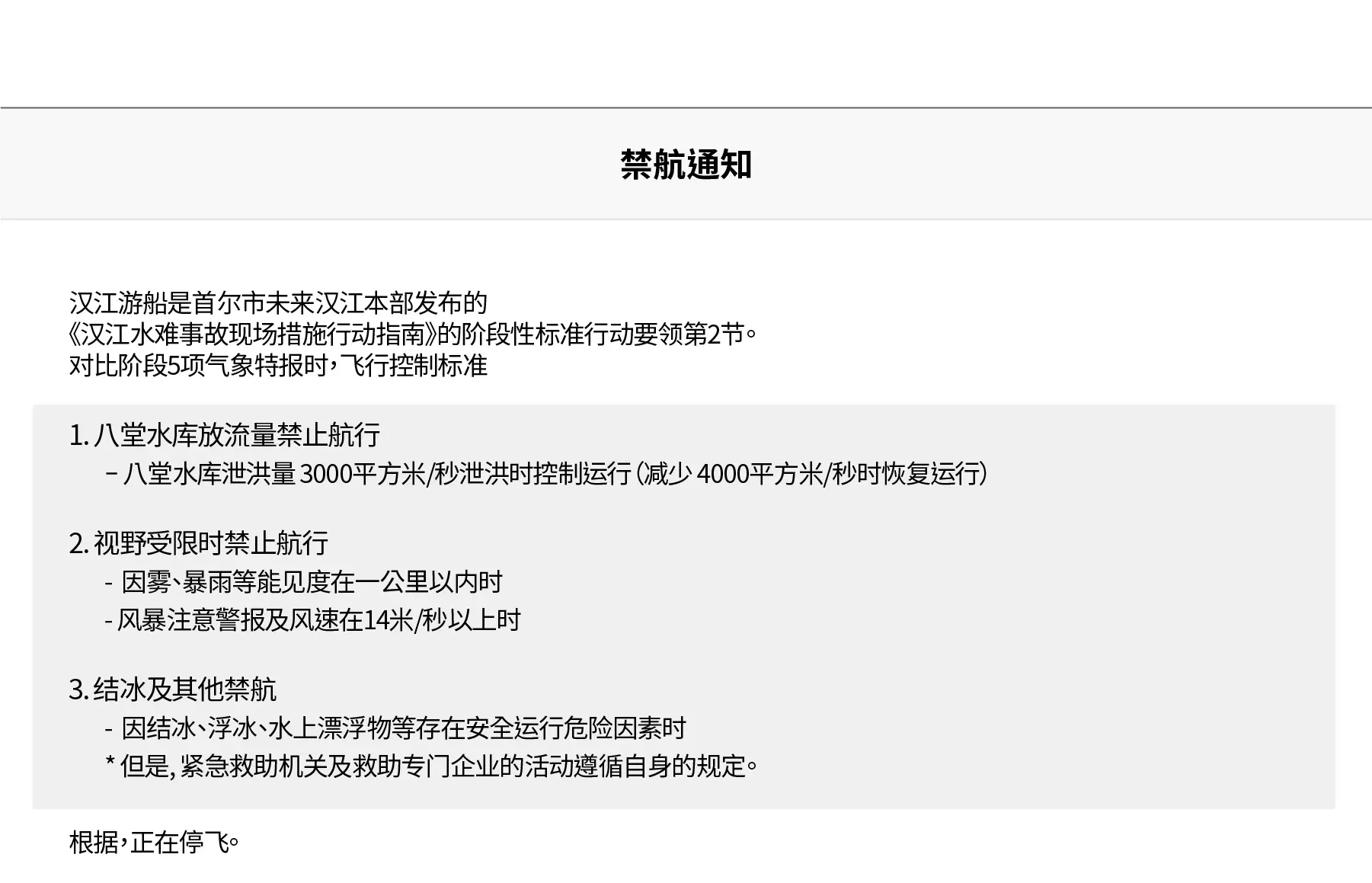 关于停航的通知
